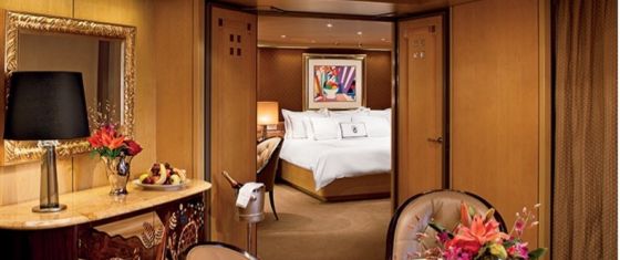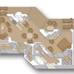 Generously proportioned and filled with light, these elegant suites include a living room, dining room, pantry with microwave and refrigerator, and floor-to-ceiling windows overlooking a private verandah with whirlpool. The bedroom features a king-size bed—the Signature Mariner's Dream™ bed with plush Euro-Top mattresses, plus a separate dressing room and the bath includes an oversize whirlpool bath and shower as well as an additional shower stall. There's also a sofa bed, suitable for two people, and a guest toilet. Amenities include a private stereo system, use of the exclusive Neptune Lounge, private concierge and an array of complimentary services. The configuration of staterooms may vary from the images shown.